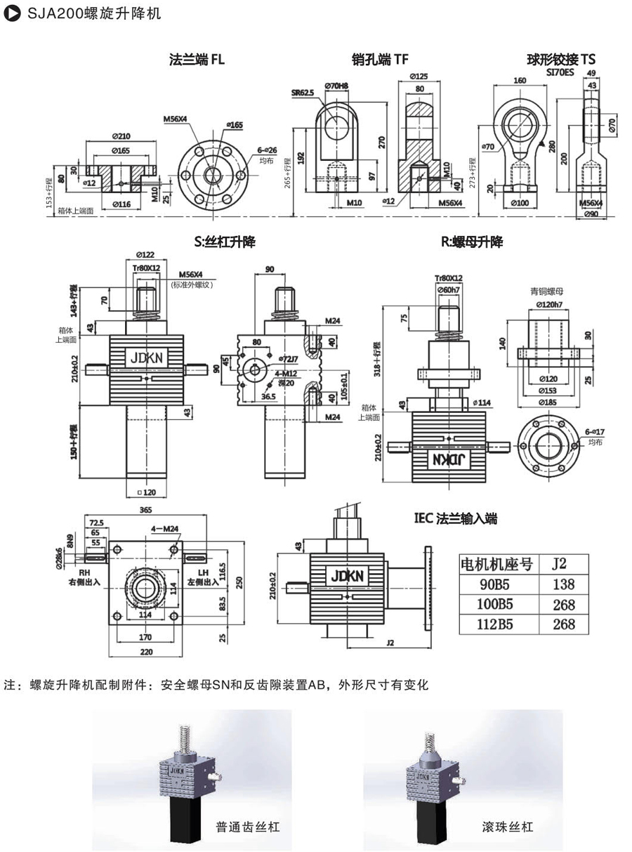 SJA螺旋升降機又稱SJA絲杠升降機,本產品是一種超重部件,可起升、下降及借助附件實現推進、翻轉及各種高度位置調整等功能。結構及裝配形式可選,可按客戶要求定制,安裝方便、使用靈活、功能多、配套及形式多、可靠性好、使用壽命長等優點。