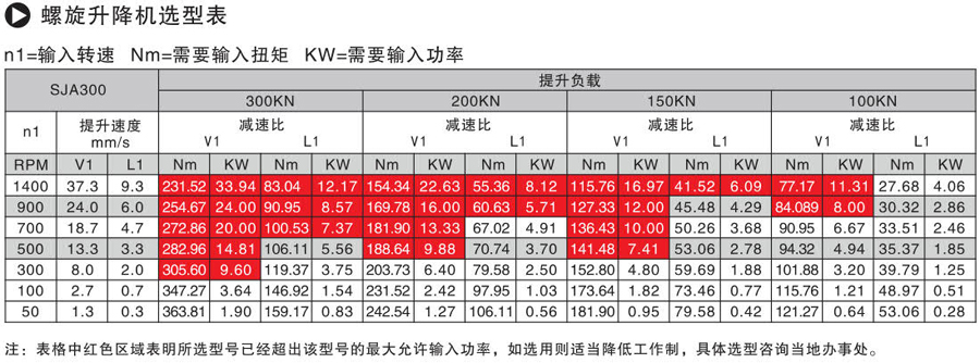螺旋升降機正常工作狀態下的輸入功率不能超過最大輸入功率,輸入功率kw=(滿載扭矩Nm x負載率x輸入轉速rpm )/ 9550m,